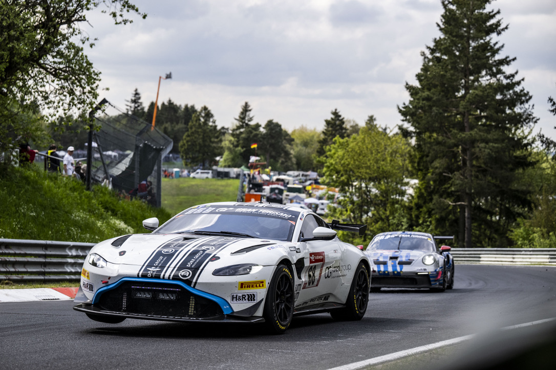 Gleichzeitig waren noch zwei Aston Martin Vantage GT4 vertreten. Das Quartett Theo Nouet, Michael Funke, Sven Schädler und Frank Weishar sicherte sich die Pole-Position für das Rennen und mischte auch im Rennen an der Spitze der hartumkämpften GT4-Kategorie mit. Leider schaffte es das Auto nach einer Kollision ebenfalls nichts in Ziel, verbuchte aber die schnellste Rennrunde auf seinem Konto.